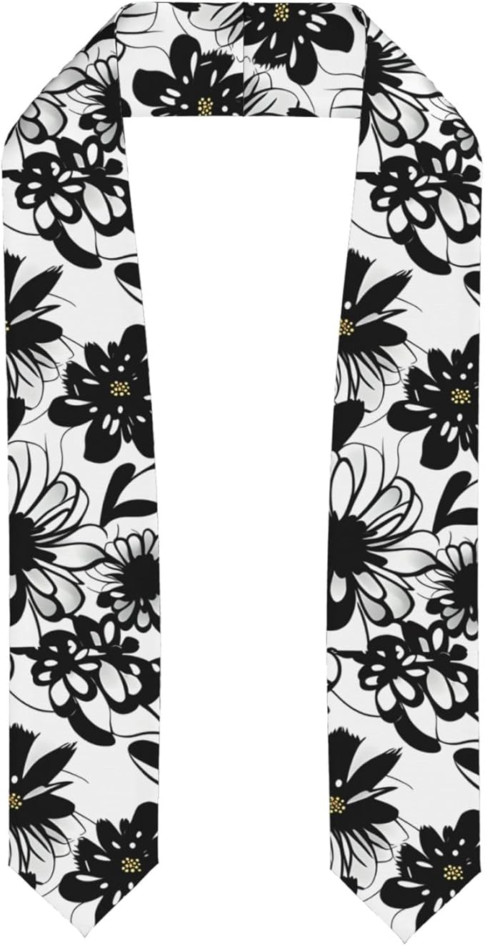Black and White Flowers Print Graduation Stole,Graduation shawl ribbon sash Honor Stole Scarf Shawl,Unisex Adult