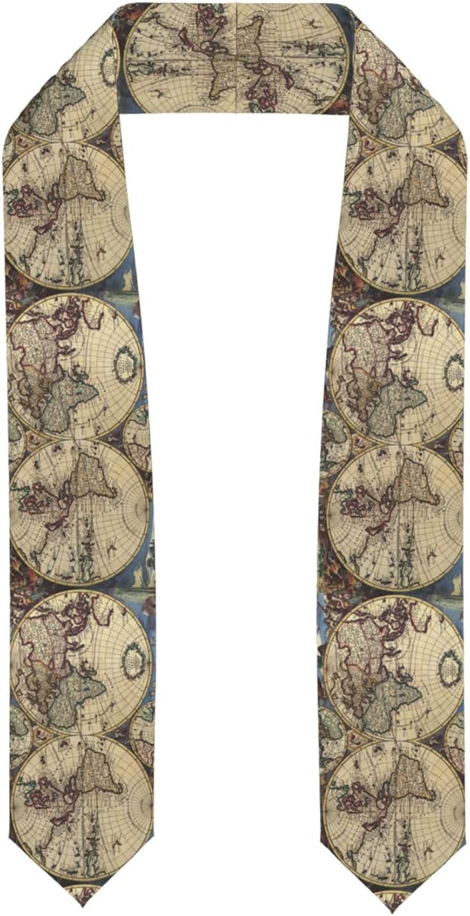 Ancient Map World Globe Print Graduation Stole,Graduation shawl ribbon sash Honor Stole Scarf Shawl,Unisex Adult