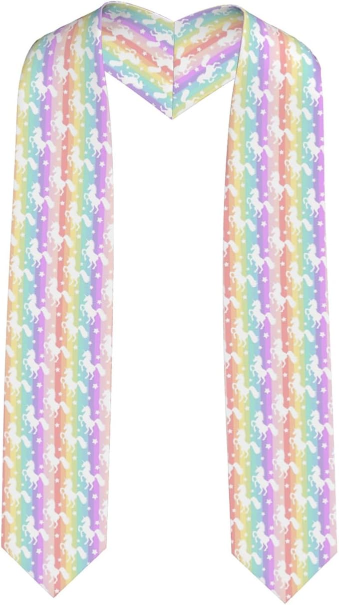 Unicorns On Colorful Stripes Print Graduation Stole,Graduation shawl ribbon sash Honor Stole Scarf Shawl