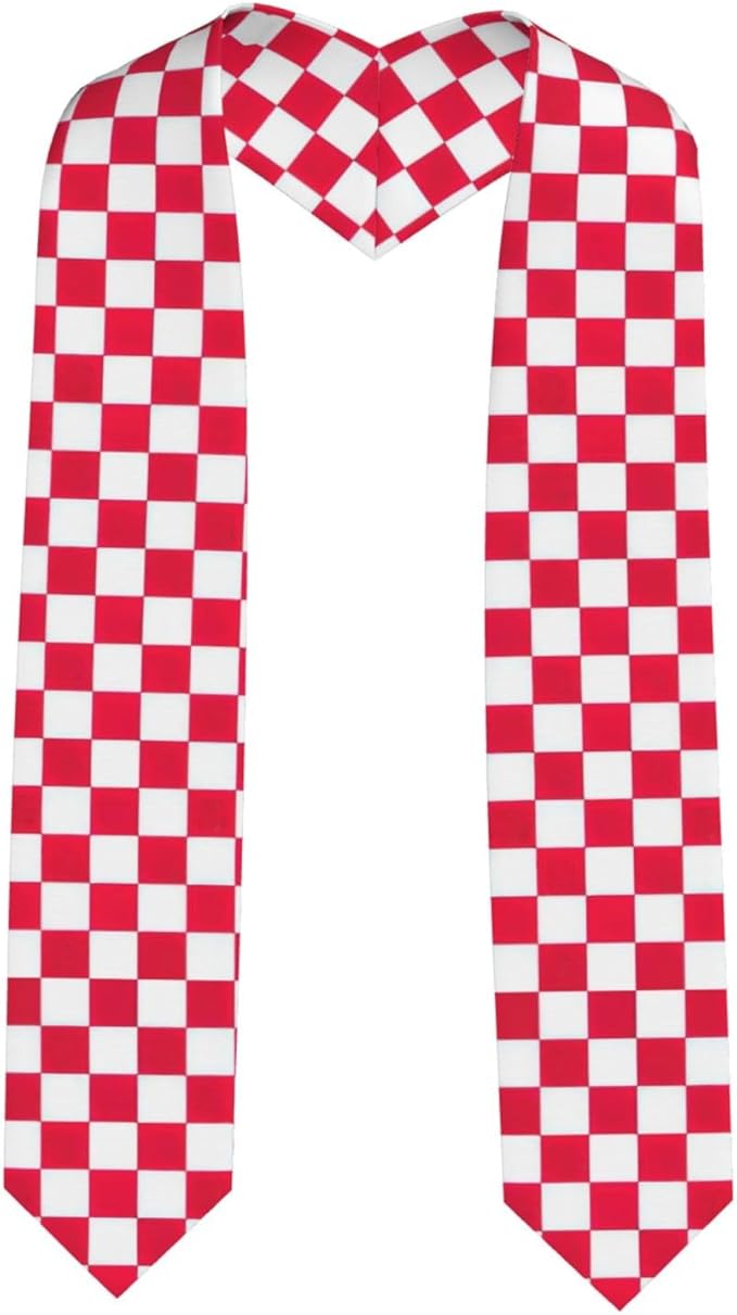 Red Checkered White Squares Print Graduation Stole,Graduation shawl ribbon sash Honor Stole Scarf Shawl,Unisex Adult